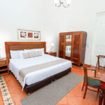 Nuestra mejor carta de presentación, para el más placentero descanso. Dos ambientes totalmente decorados con diseño de la época y con el máximo confort vanguardista. Con una Cama King Size, los corredores y jardines, abrazan la habitación llenos de historia, para que tu estancia sea inolvidable. Cada habitación cuenta con los amenities para que su estadía sea agradable y placentera.