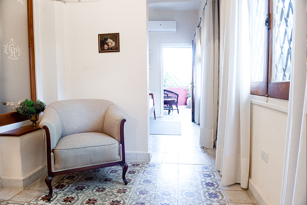 Ubicada en la planta baja, esta habitacion cuenta con una ambientación cálida, cómoda y práctica, ideal para viajes de negocio o porque no, para unos días de relax. Como parte de la arquitectura original de la casa, estas habitaciones mantienen esa esencia de su historia, es luminosa y con vista a uno de nuestro mágicos jardines. Cada habitación cuenta con los amenities para que su estadia sea agradable y placentera.